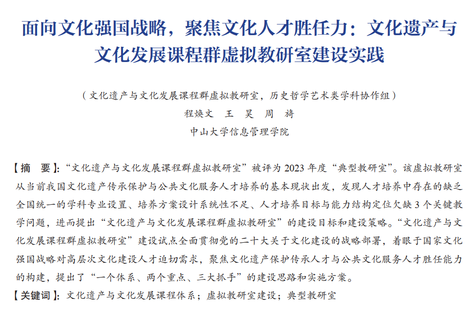 【关键词】文化遗产与文化发展课程体系;虚拟教研室建设;典型教研室