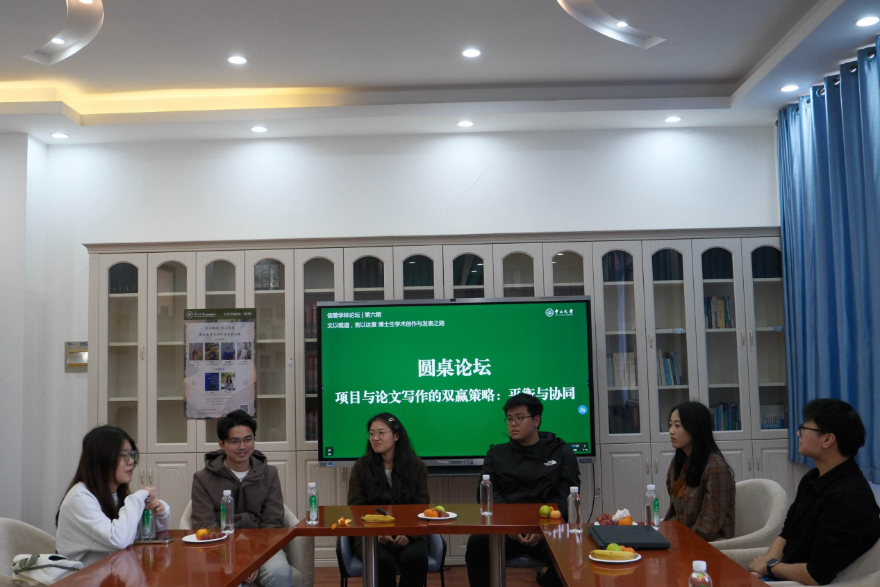 为深入学习贯彻习近平总书记致中山大学建校100周年重要贺信精神,充分发挥第五学生党支部在促进朋辈学术交流、相互提升的引领作用,2025年1月9日,由pg麻将胡了试玩-麻将胡了技巧-pg麻将胡了2 党委主办,pg麻将胡了试玩 党委第五学生党支部承办的信管学林论坛(第6期)在pg麻将胡了试玩 A103成功举办。论坛分为主旨分享和圆桌论坛两个环节,由第五学生党支部书记马秀文主持,学院党委副书记吴曼瑜莅临指导,2023级至2021级本硕博学生参与。