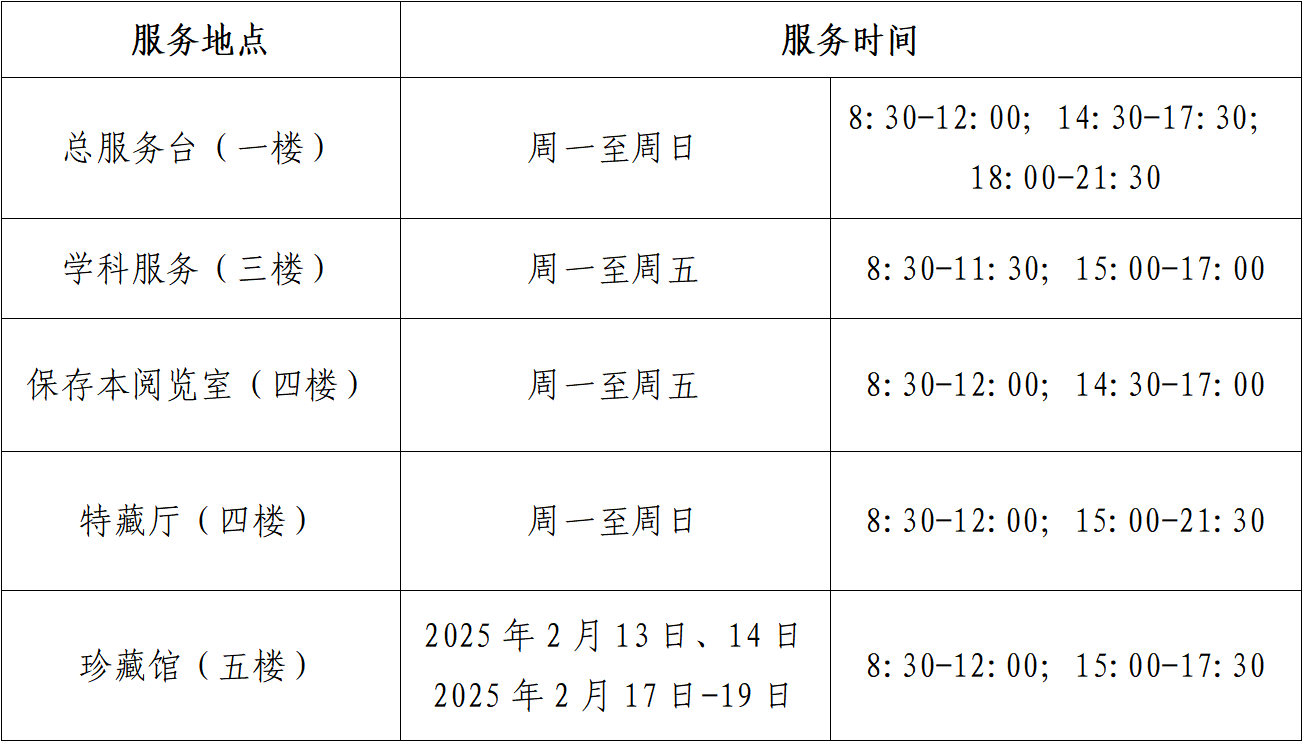 3. 2025年2月1日至4日开放自修,暂停人工服务。