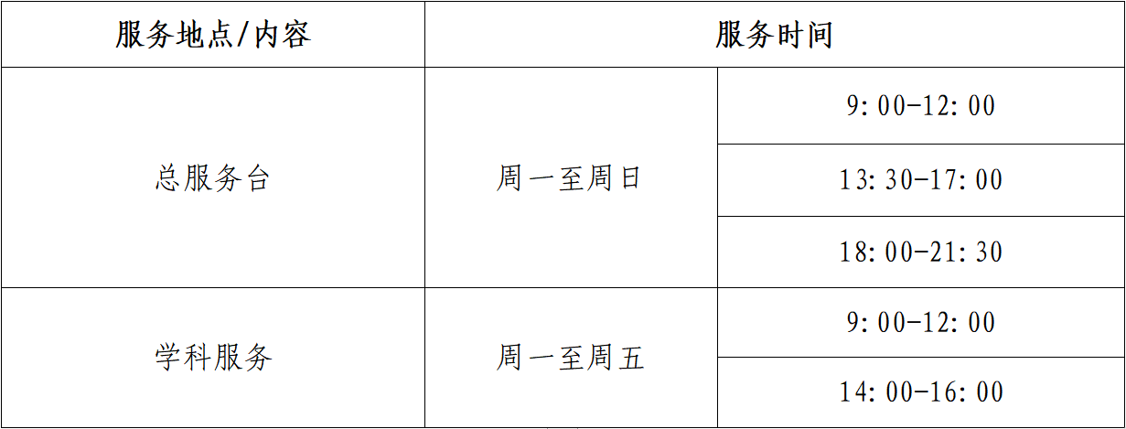 注:寒假期间仅开放图书馆北门出入口和一至三楼阅览区域。如需借阅喜乐斯藏书或其他东校园专藏,请与一楼总服务台值班馆员联系。