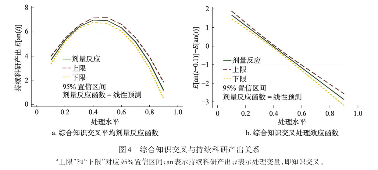 ③关于科研主体的科研合作知识交叉对其持续科研产出倒U形非线性的影响关系的结论,丰富了相关研究的理论发现,为研究问题和研究方法知识交叉影响差异的探索提供了新的研究思路;